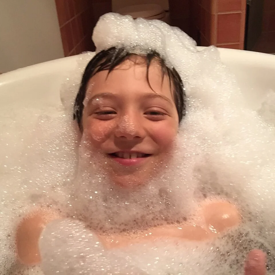 Then loud la la la! Blah blah blaaaaaaahhhhh! singing, getting louder, from my son in the tub. It’s time to turn my attention to him.